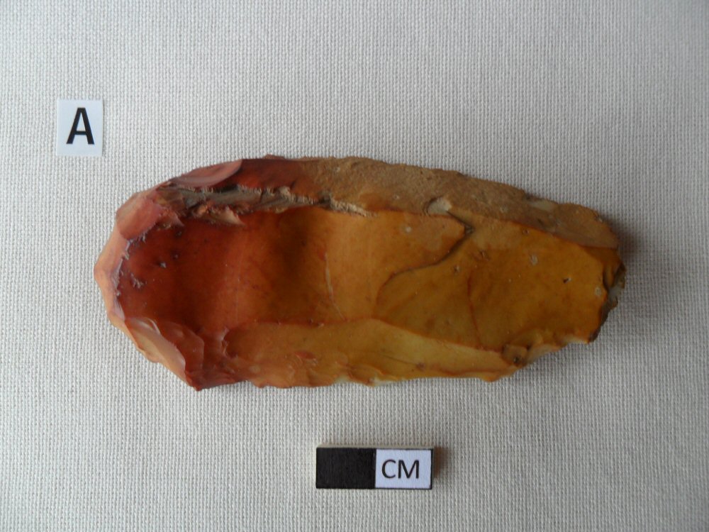 Larger blades (Photograph C) were also used as a basic form onto which various tools such as knives, saws and scrapers could be produced.