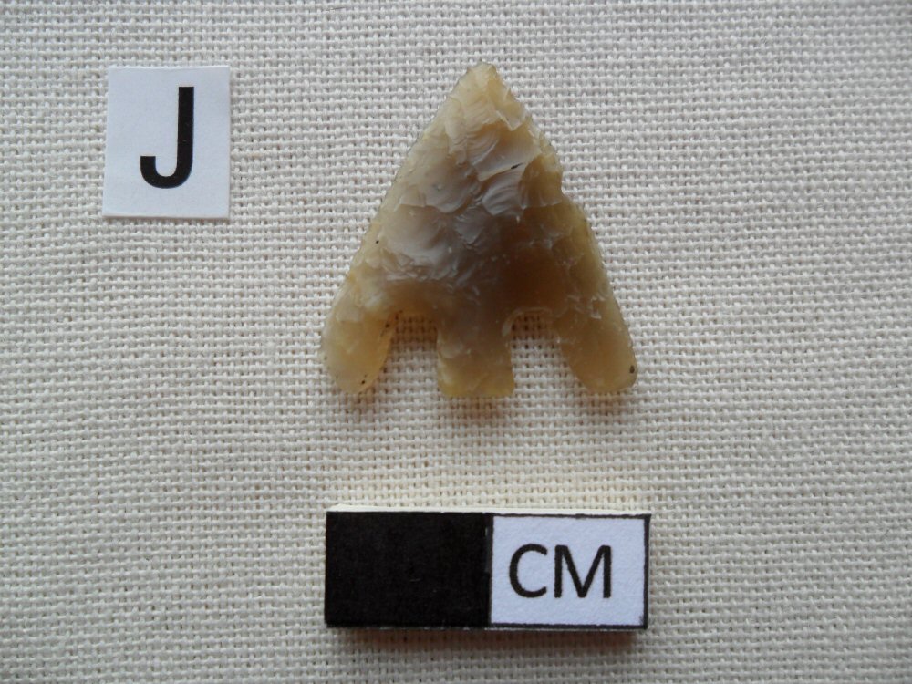 Photographs I and J show how the design of arrowhead progressed from the leaf shape of the Neolithic to the beautifully crafted barbed and tanged arrowhead of the Bronze Age.