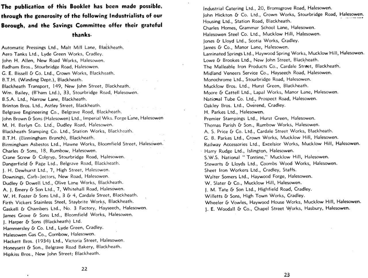 This booklet was published by H Parkes Ltd Halesowen